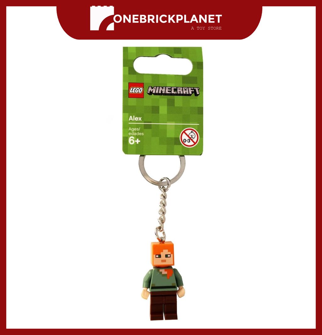 - Features an authentic LEGO® Minecraft Alex minifigure attached to a durable metal ring and chain