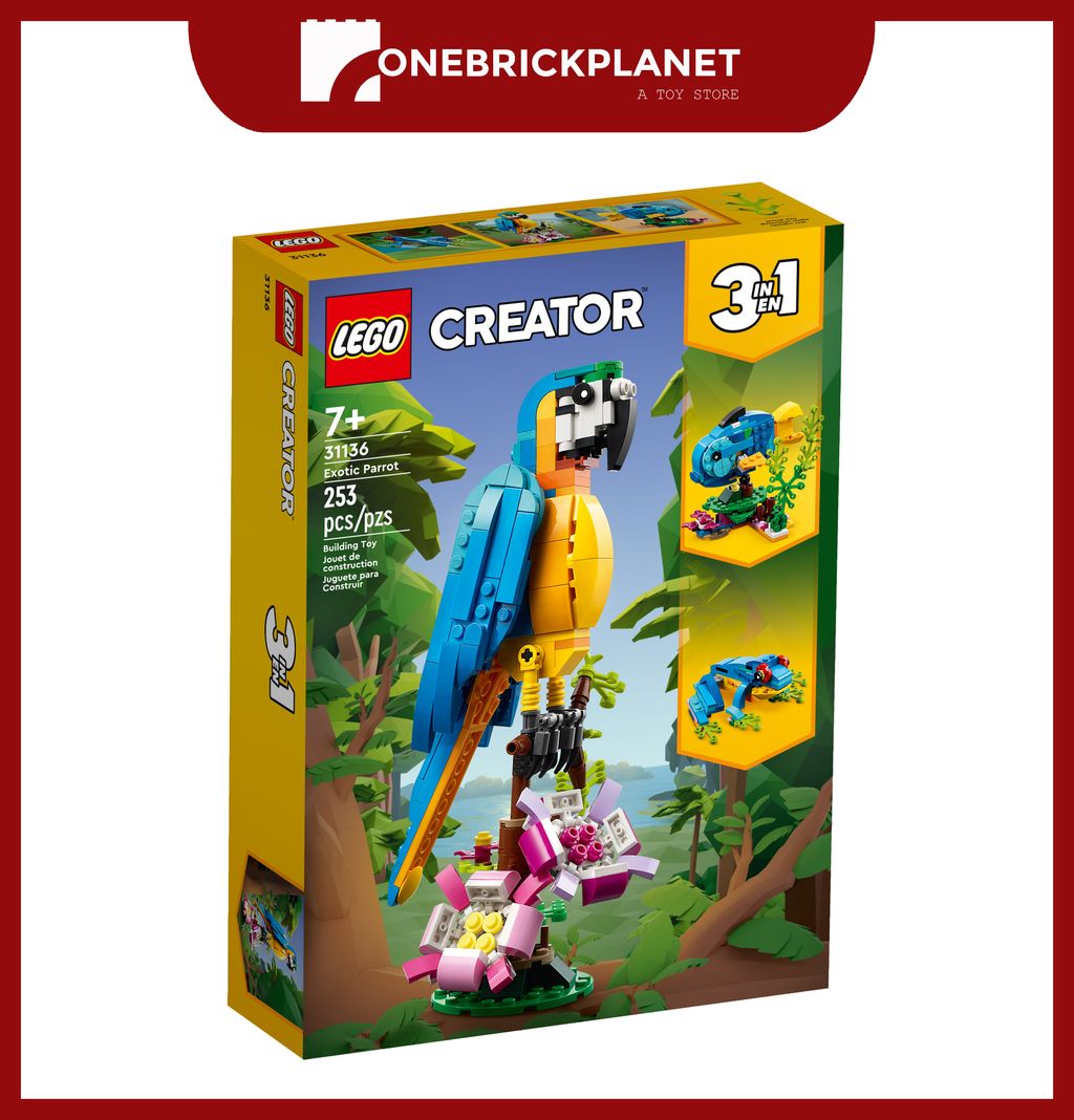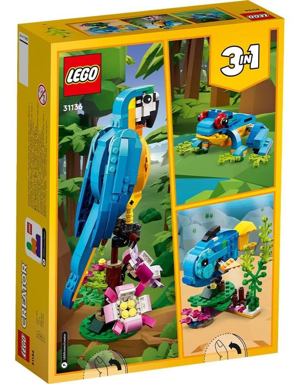 Little builders and passionate animal fans aged 7+ can travel deep into the rainforest for action-packed stories with this LEGO® Creator 3in1 Exotic Parrot (31136) building set. It features a colorful parrot that can fully rotate its body while sitting on a tree branch and move its wings and tail.