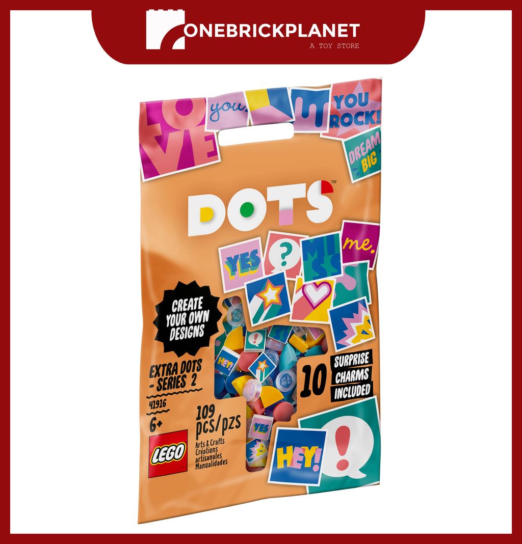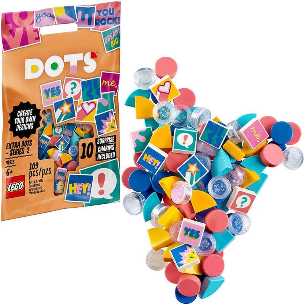 Kids and fans of arts and crafts items will love this cool LEGO DOTS (41916) Extra DOTS - Series 2 pack! Designed to work with all the different LEGO DOTS sets, these easy extra tiles offer kids the chance to expand their designs in fun new ways and change them to suit their outfit, mood or room decor.