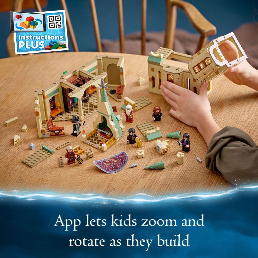 This multi-level Hogwarts playset features several areas that will inspire imaginative play, each filled with authentic details from the popular movie series. The set includes 6 minifigures: Harry Potter, Hermione Granger, Albus Dumbledore, Severus Snape, Argus Filch and Madam Pince. Familiar items include Harry's Invisibility Cloak, the Pensieve memory keeper, the legendary Sword of Gryffindor, the celebrated Sorting Hat and baby Fawkes rising from the ashes. The free LEGO Building Instructions app lets kids view, zoom and rotate the model as they build, providing amazing immersion and interaction during the construction process. This modular set connects with others in the series to create an entire Hogwarts Castle.